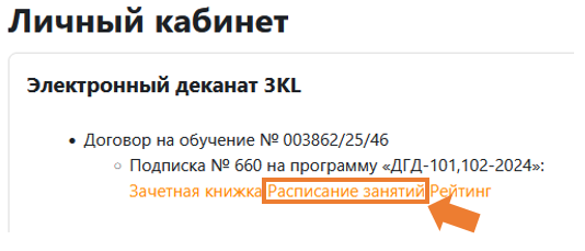 В этом блоке выберите ссылку «Расписание занятий».